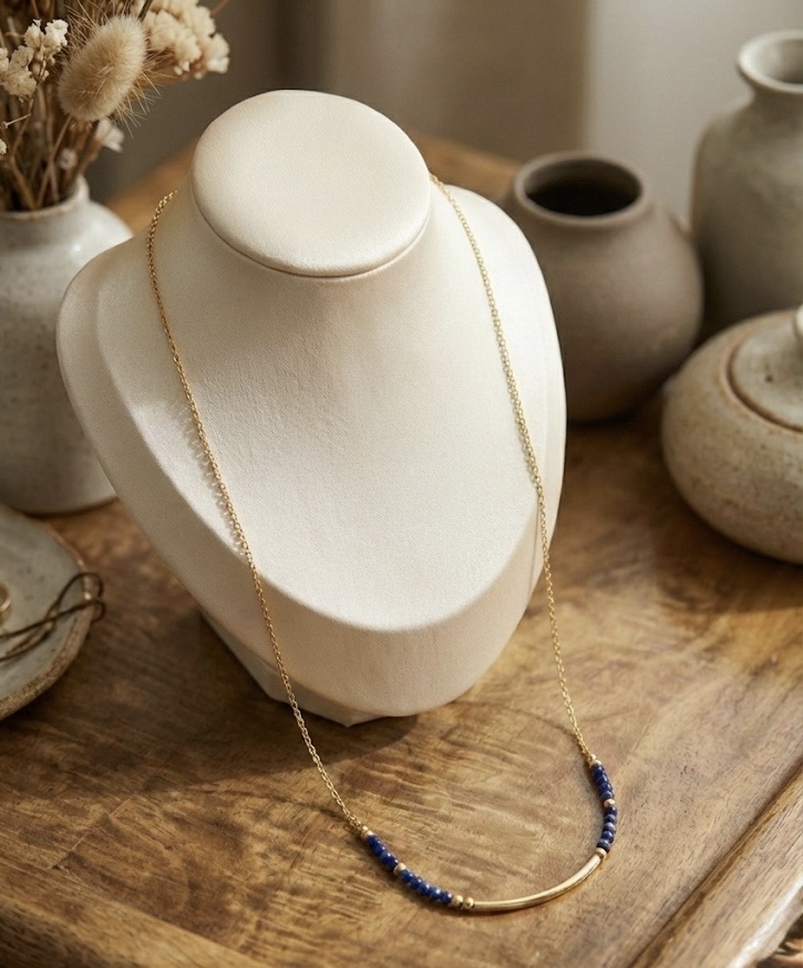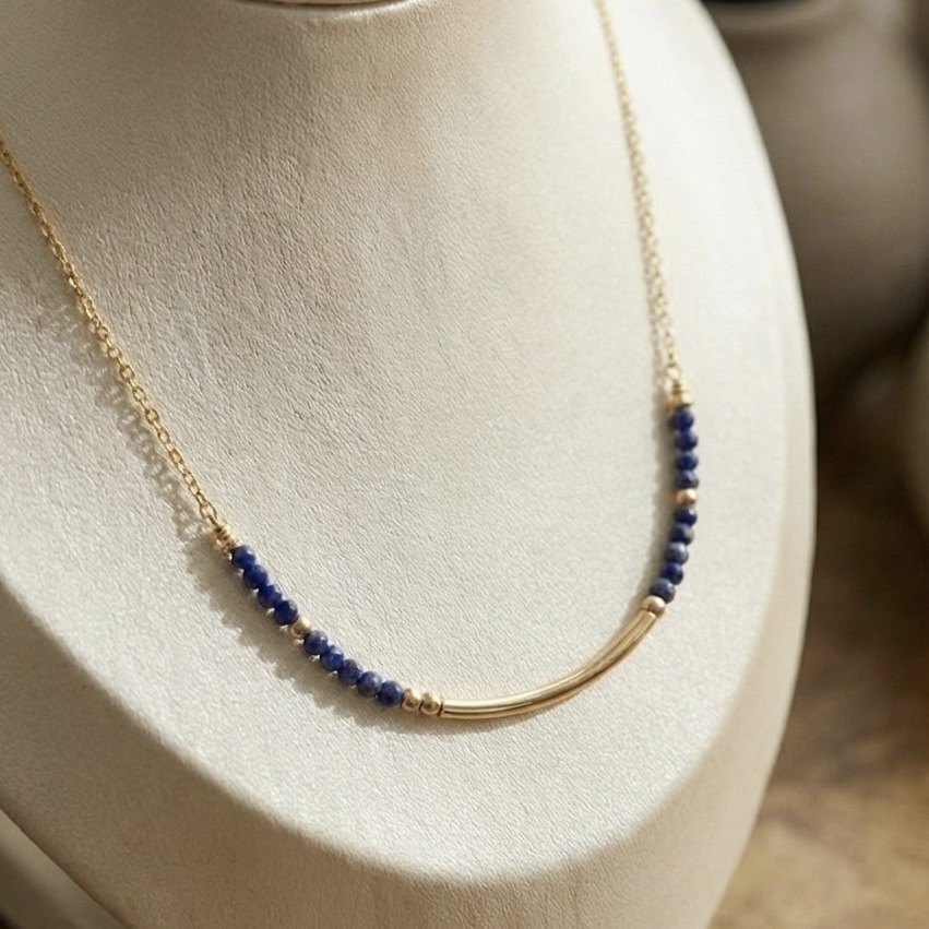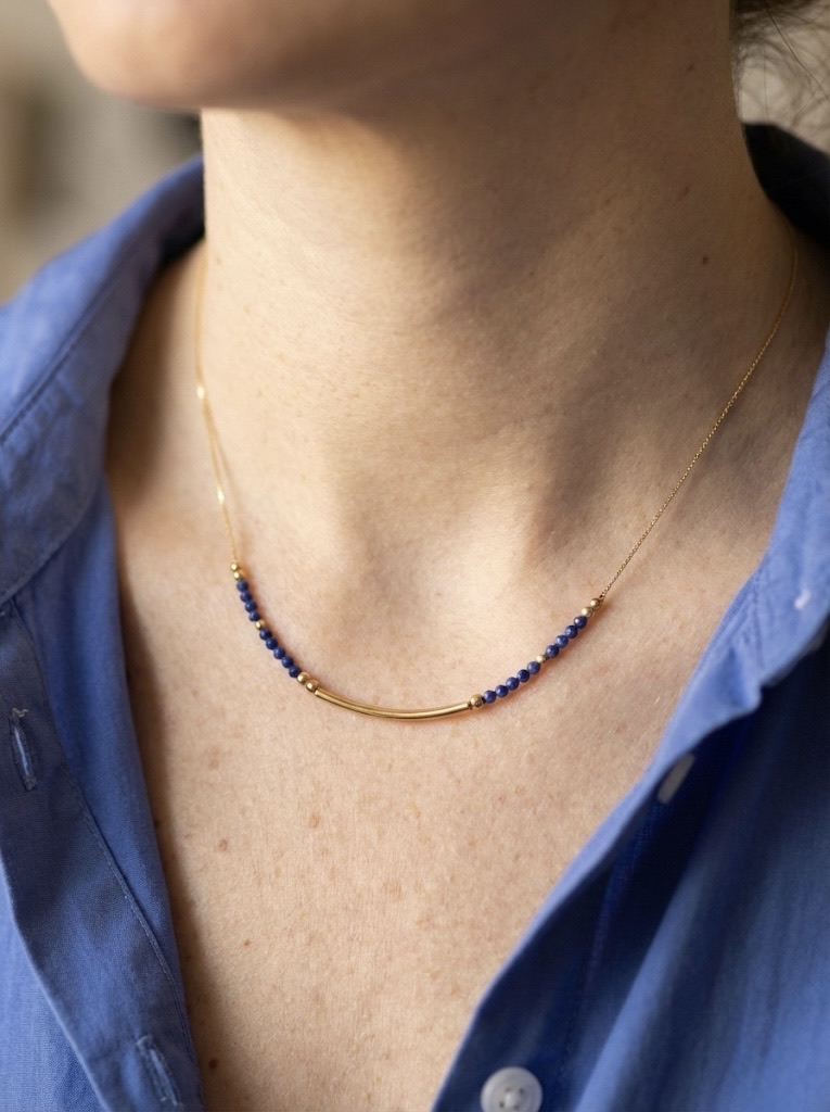 Collier tige et perles bleues Lapis-Lazulis