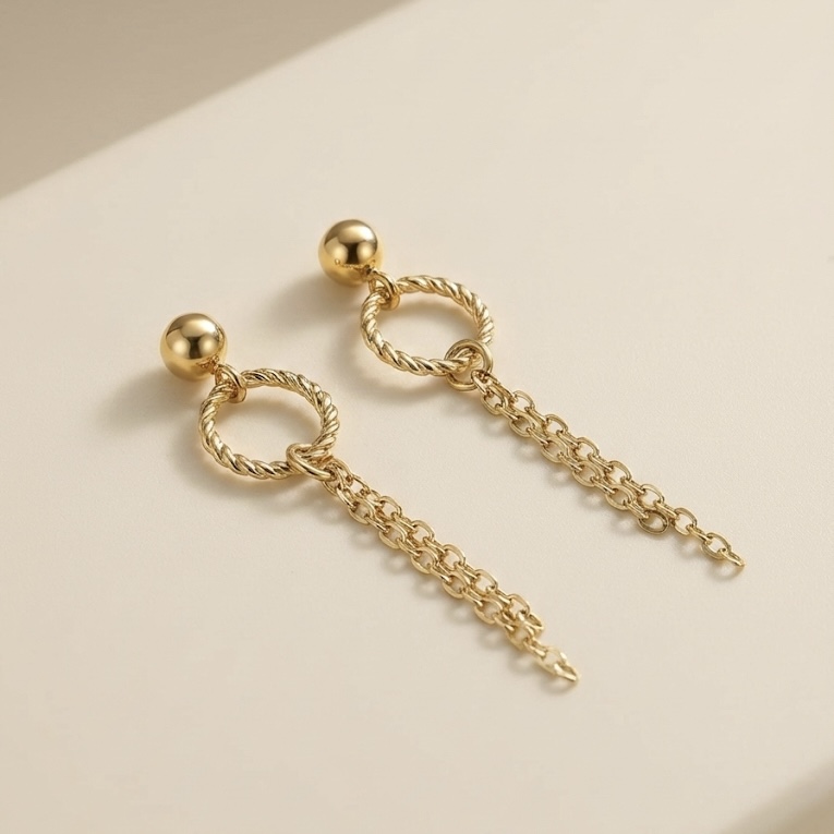 Puces cercle strié acier inoxydable avec chaîne pendante
